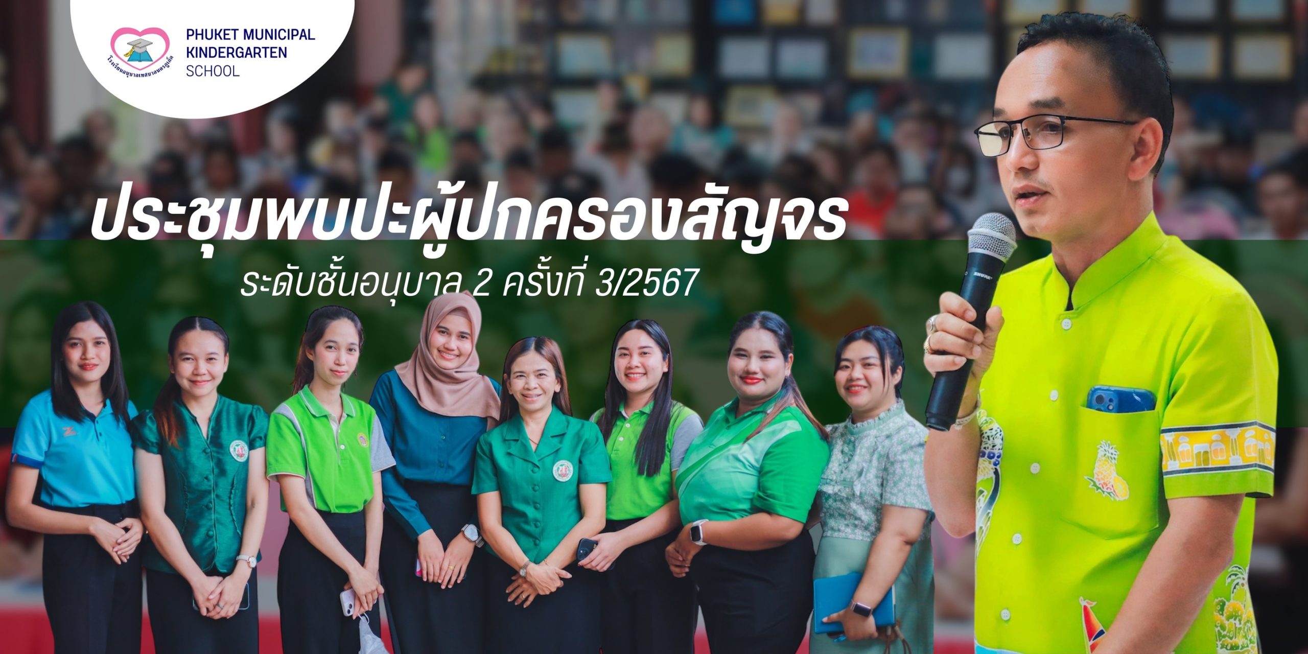 วันที่ 15 มกราคม 2568 โรงเรียนอนุบาลเทศบาลนครภูเก็ตนำโดยนายเสน่ห์ สุขขนาน ผู้อำนวยการสถานศึกษา พร้อมด้วยคณะครูและบุคลากร จัดการประชุมพบปะผู้ปกครองสัญจร ครั้งที่ 3 ปีการศึกษา 2567 สำหรับผู้ปกครองนักเรียนชั้นอนุบาลปีที่ 2 ณ ห้องประชุมรักแรกพบ โรงเรียนอนุบาลเทศบาลนครภูเก็ต เพื่อชี้แจงแนวทางการดำเนินงานและการพัฒนาสถานศึกษา แจ้งข่าวสาร กิจกรรมต่าง ๆ ของทางโรงเรียนที่จะจัดให้กับนักเรียน ในภาคเรียนที่ 2 ของปีการศึกษา 2567 รวมทั้งรับฟังข้อเสนอแนะและความต้องการของผู้ปกครองเพื่อร่วมกันพัฒนาบุตรหลานและโรงเรียนต่อไป