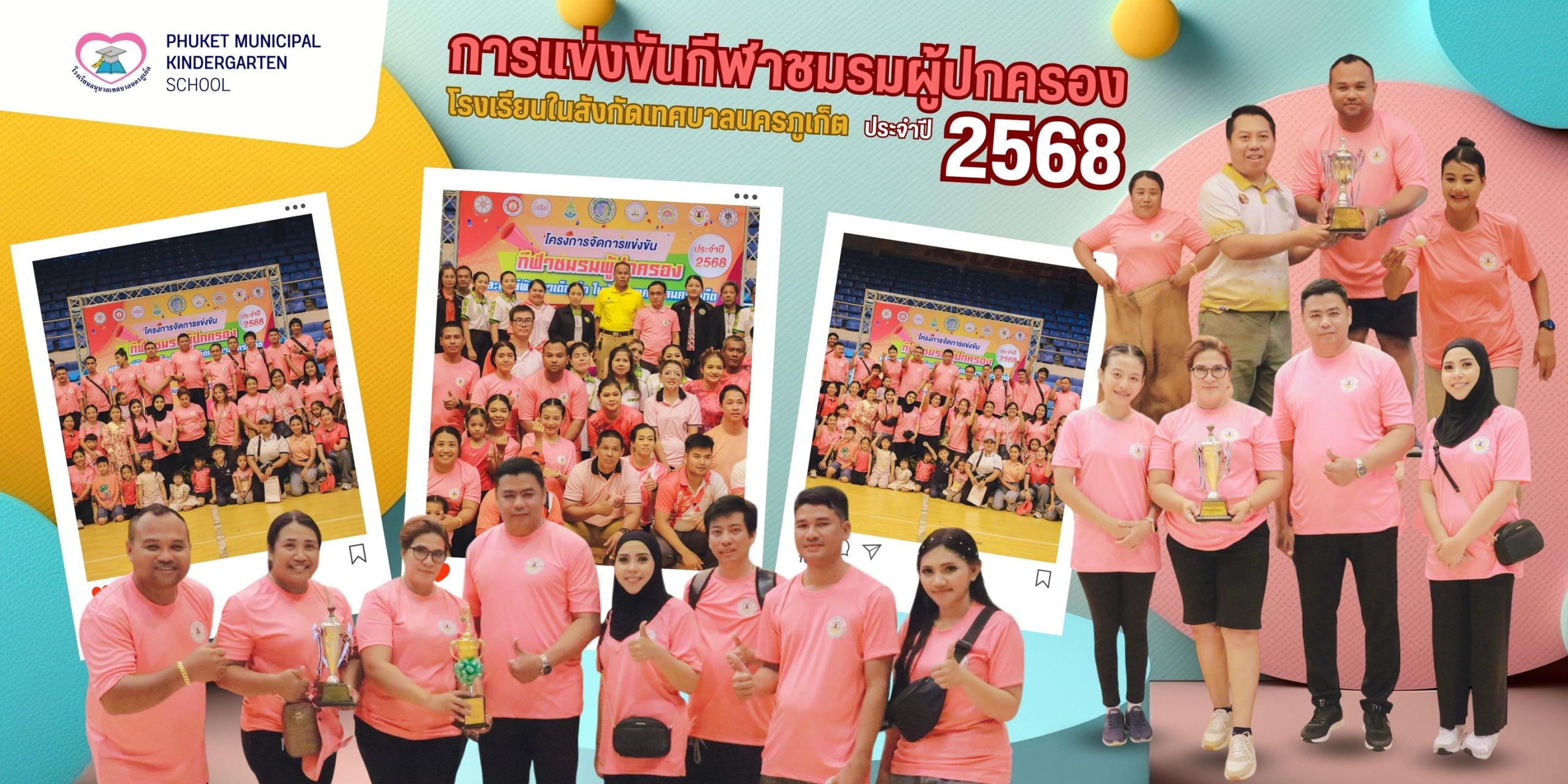 วันที่ 15 กุมภาพันธ์ 2568 ผู้ปกครองนักเรียนโรงเรียนอนุบาลเทศบาลนครภูเก็ต เข้าร่วมการแข่งขันกีฬาชมรมผู้ปกครองโรงเรียนและศูนย์พัฒนาเด็กเล็กในสังกัดเทศบาลนครภูเก็ต ประจำปี 2568 นายสาโรจน์ อังคณาพิลาส นายกเทศมนตรีนครภูเก็ต เป็นประธานเปิดการแข่งขัน พร้อมด้วย นางสาวอรไพลิน ตระกูลปริพนธ์ นายศุภโชค ละอองเพชร นายสุทธิพันธ์ สกุลเทพ รองนายกเทศมนตรีนครภูเก็ต สมาชิกสภาเทศบาลนครภูเก็ต นายเฉลิมพร ปิยณรงค์โรจน์ ปลัดเทศบาลนครภูเก็ต หัวหน้าส่วนราชการทุกภาคส่วน คณะผู้บริหารสถานศึกษา คณะครูโรงเรียนสังกัดเทศบาลนครภูเก็ต คณะกรรมการชมรมผู้ปกครองสถานศึกษาโรงเรียนสังกัดเทศบาลนครภูเก็ต เจ้าหน้าที่สำนักการศึกษา เจ้าหน้าที่กองการท่องเที่ยวและกีฬา เทศบาลนครภูเก็ต คณะผู้ปกครอง เจ้าหน้าที่ผู้เกี่ยวข้อง และแขกผู้มีเกียรติ เข้าร่วม ณ อาคารยิมเนเซียม 4000 ที่นั่ง ศูนย์กีฬาสะพานหิน เทศบาลนครภูเก็ต