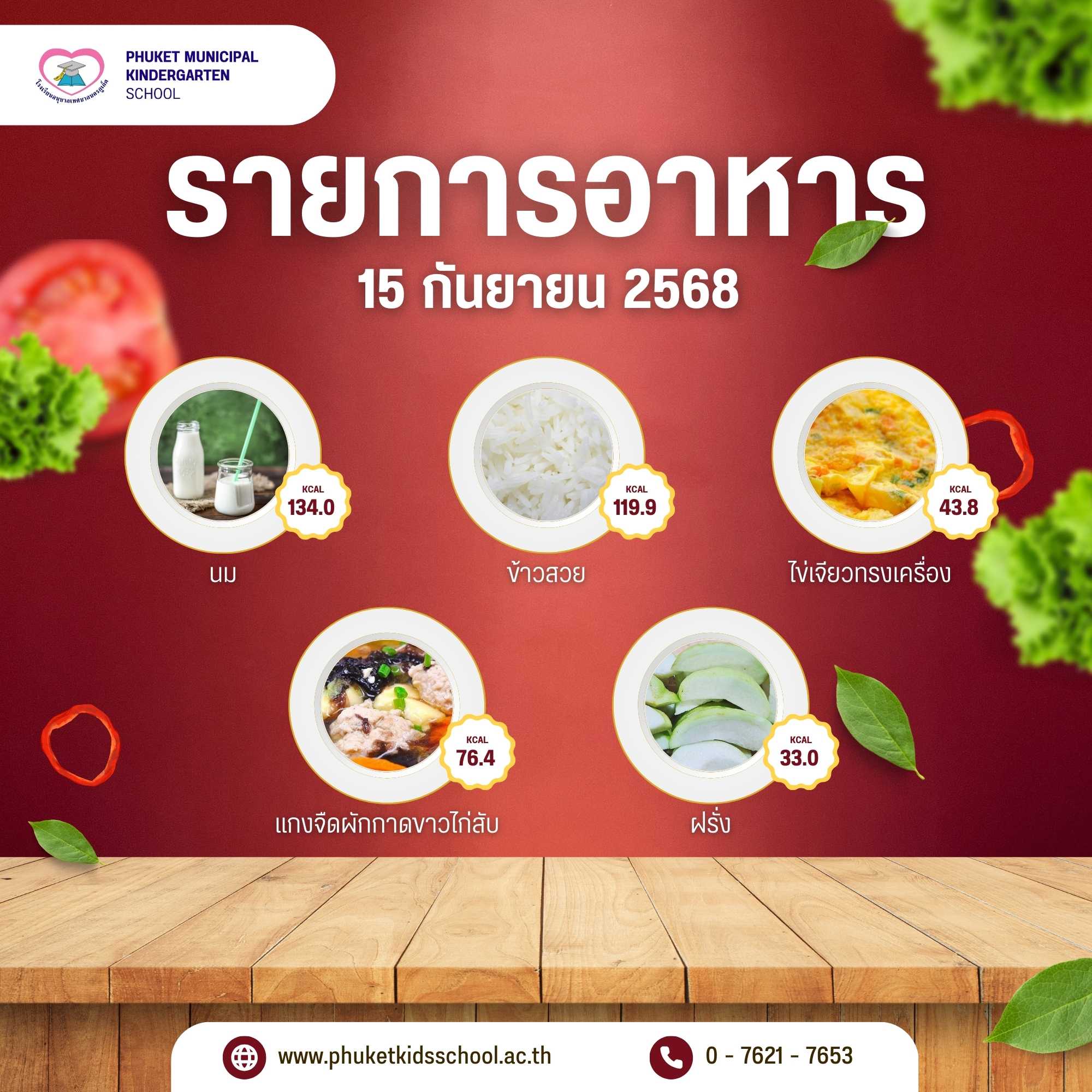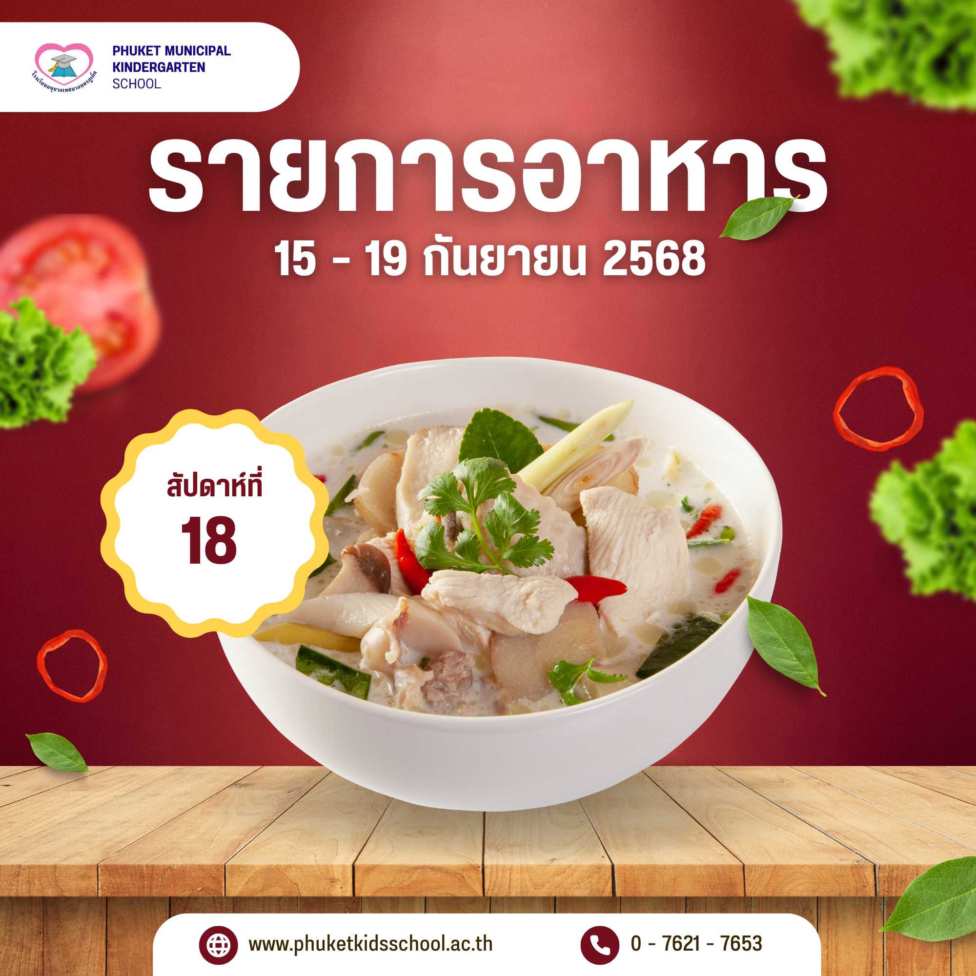 รายการอาหาร ภาคเรียนที่ 1/2568 สัปดาห์ที่ 18 ระหว่างวันที่ 15 – 19 กันยายน 2568