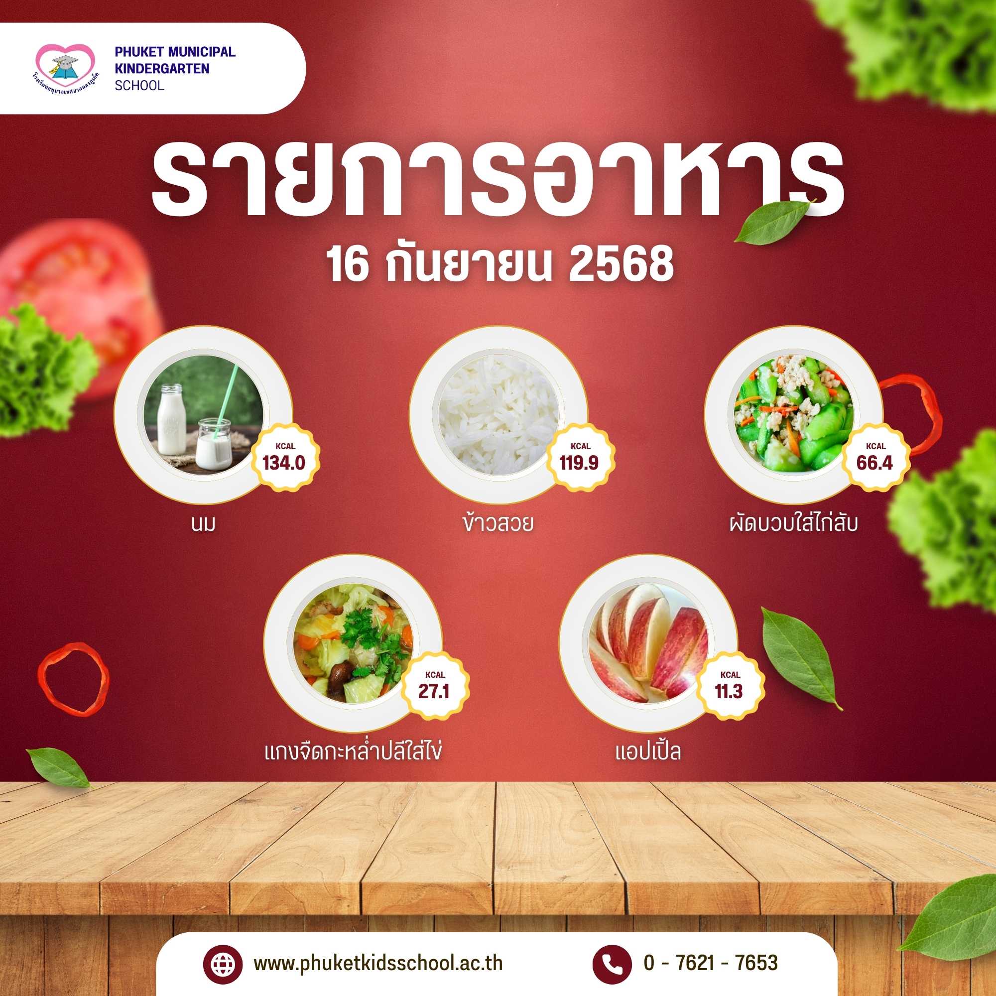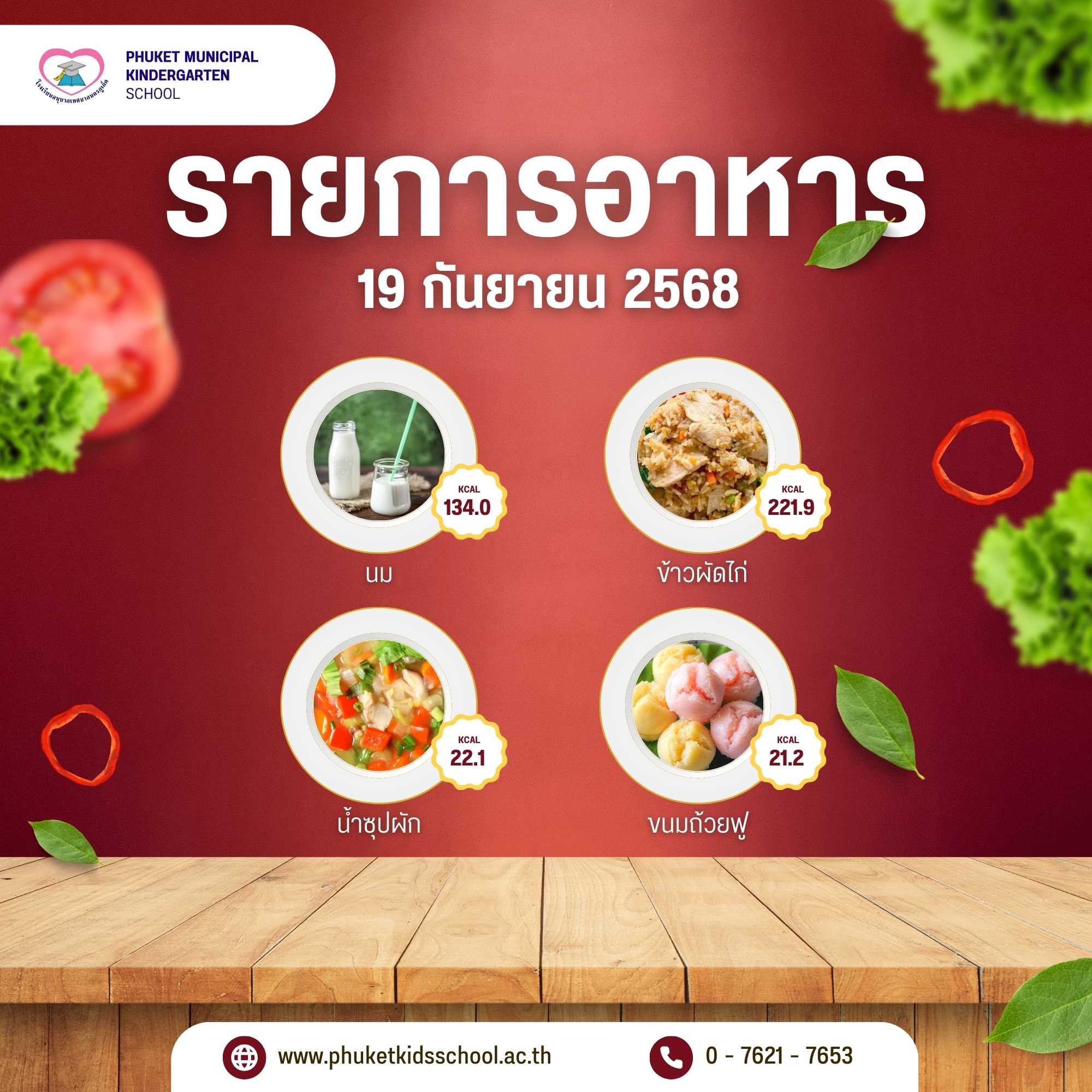 รายการอาหาร ภาคเรียนที่ 1/2568 สัปดาห์ที่ 19 ระหว่างวันที่ 23 – 26 กันยายน 2568