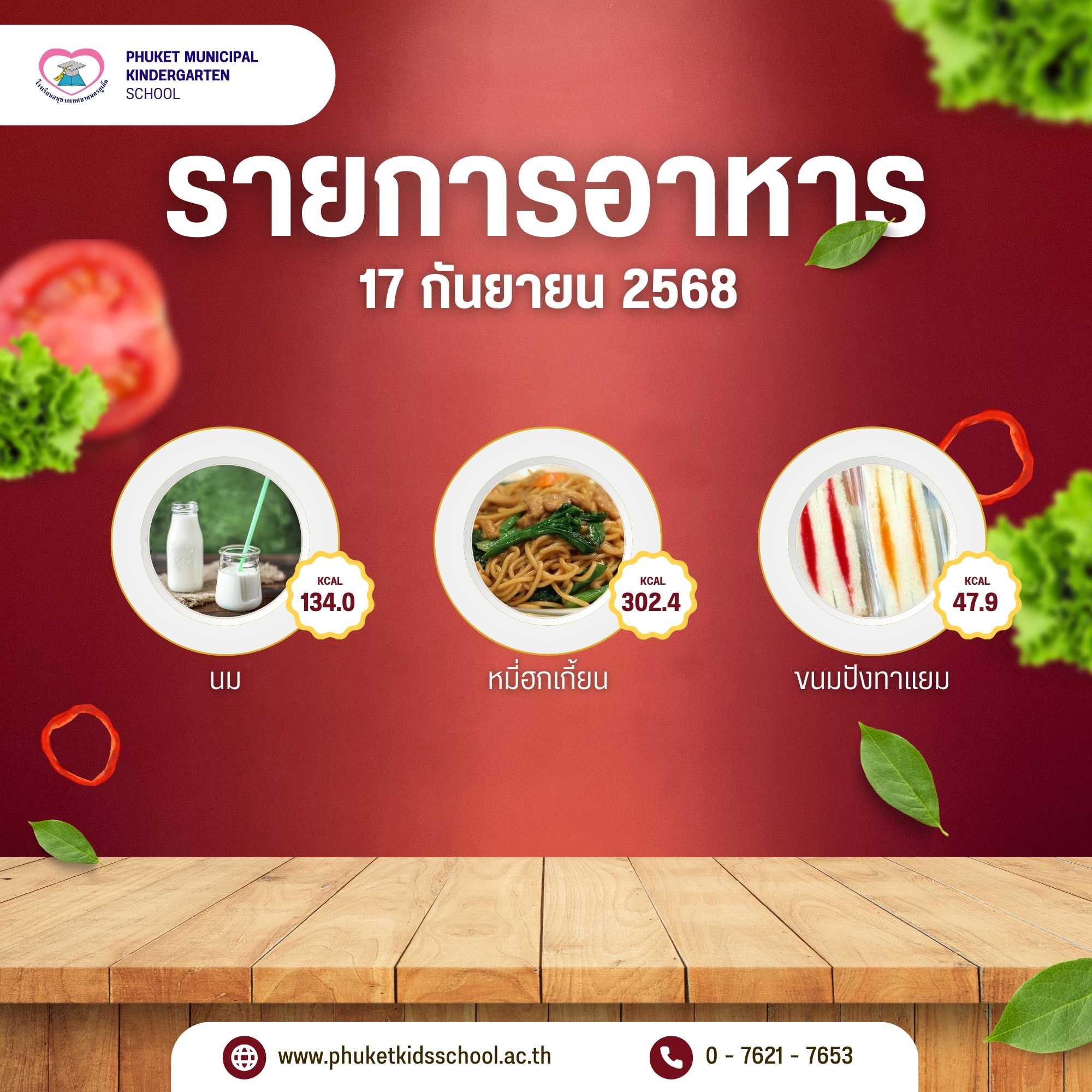 รายการอาหาร ภาคเรียนที่ 1/2568 สัปดาห์ที่ 17 ระหว่างวันที่ 8 – 12 กันยายน 2568