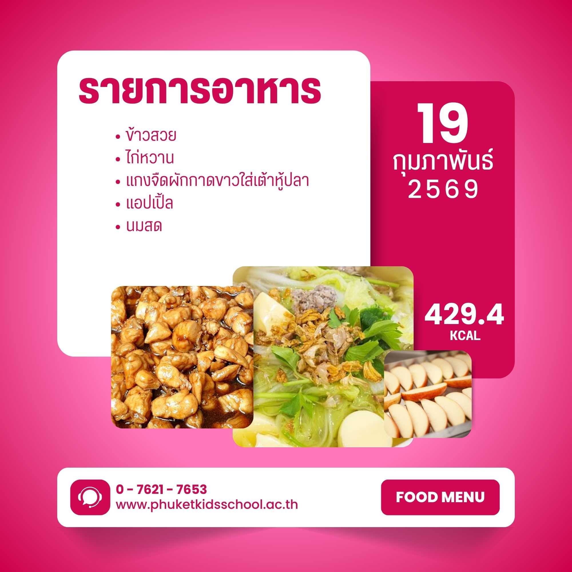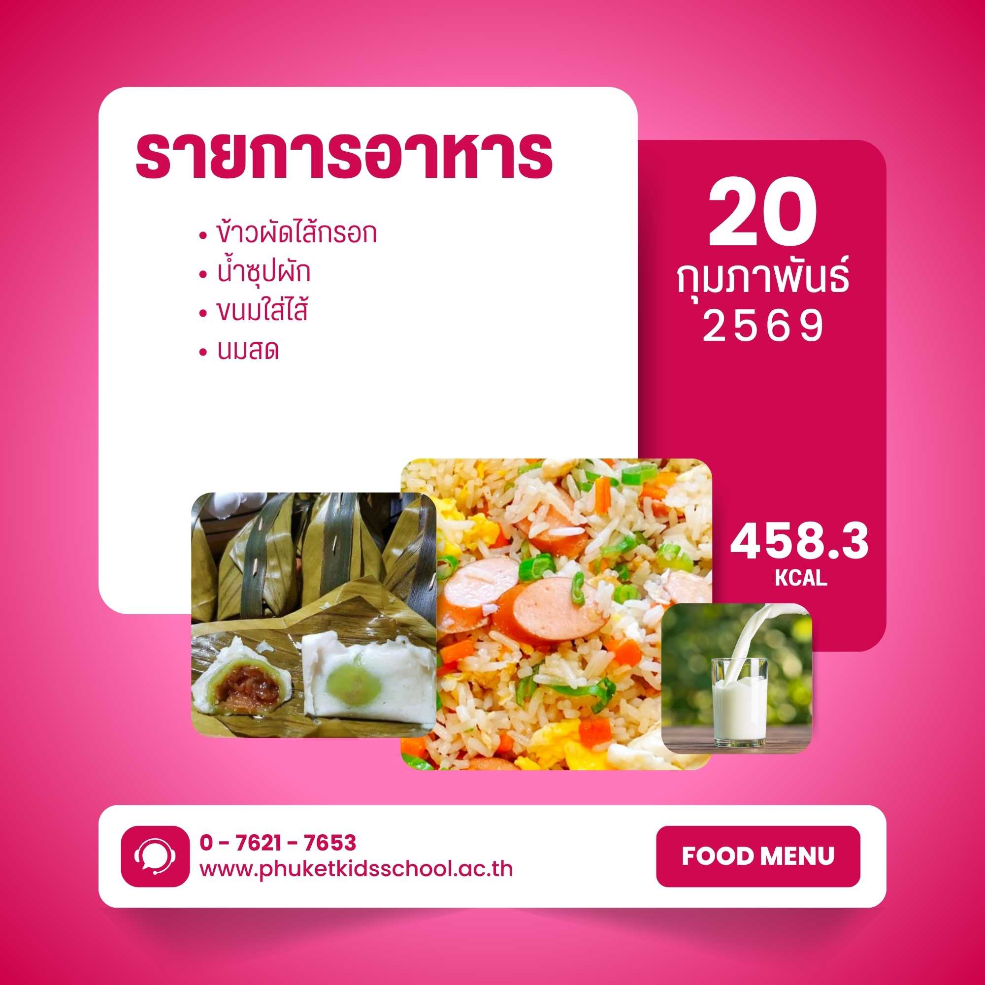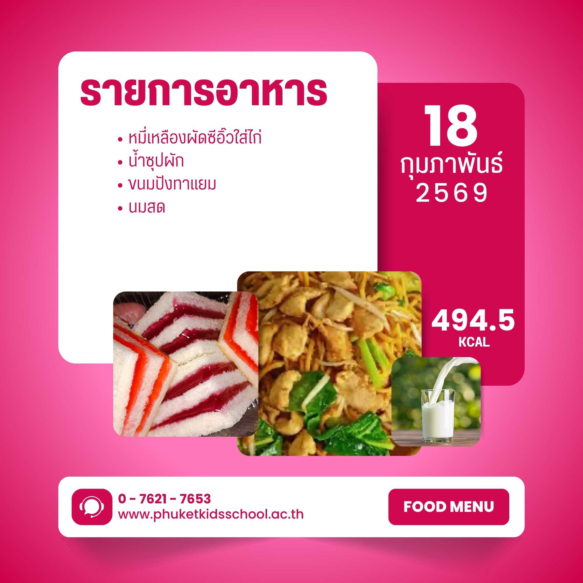 รายการอาหาร ภาคเรียนที่ 2/2568 สัปดาห์ที่ 16 ระหว่างวันที่ 18 – 20 กุมภาพันธ์ 2569