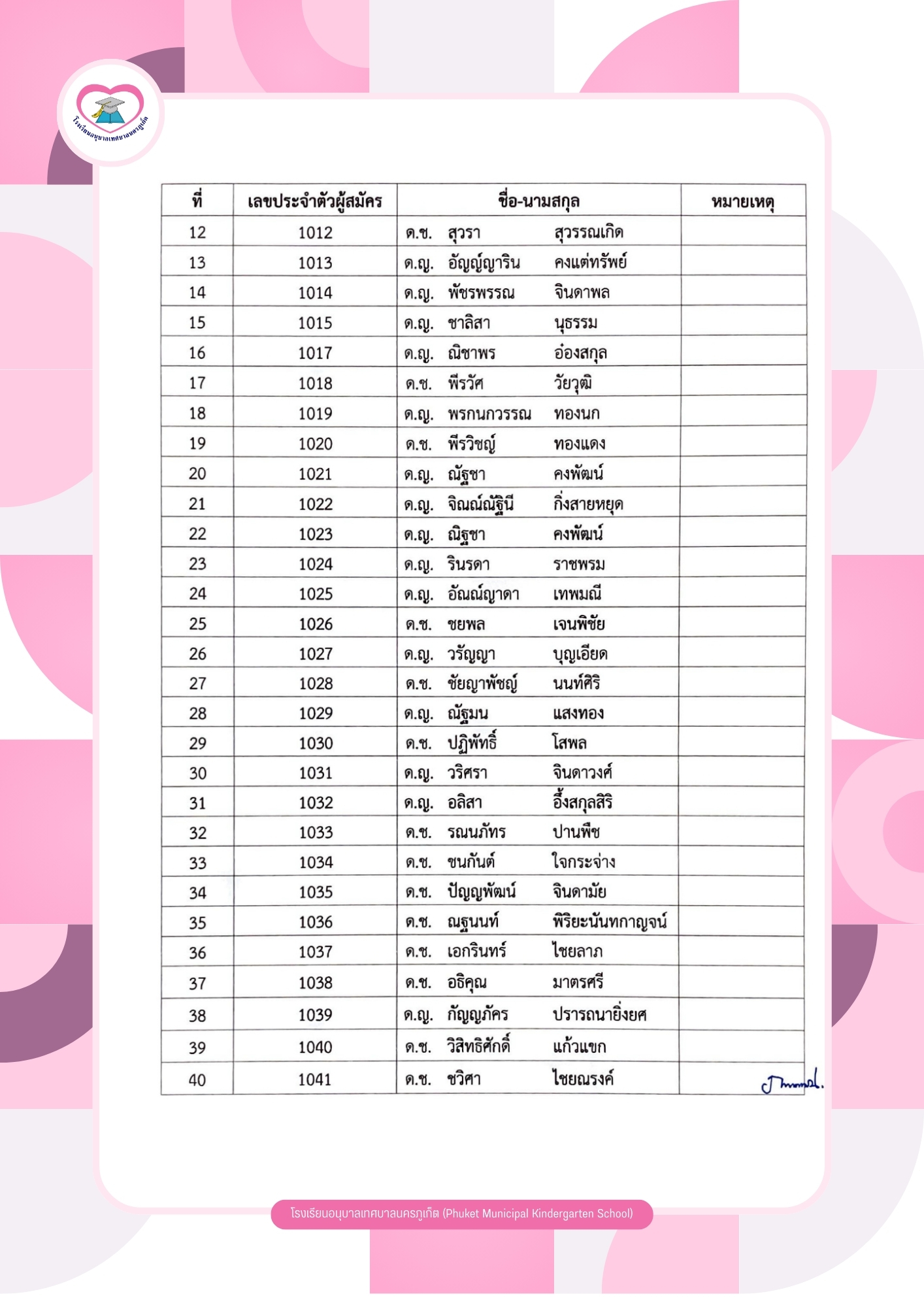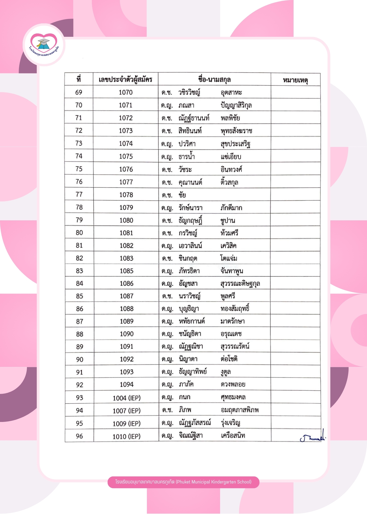 ประกาศรายชื่อนักเรียนระดับชั้นอนุบาลปีที่ 2 ปีการศึกษา 2569 (แยกตามห้องเรียน)
